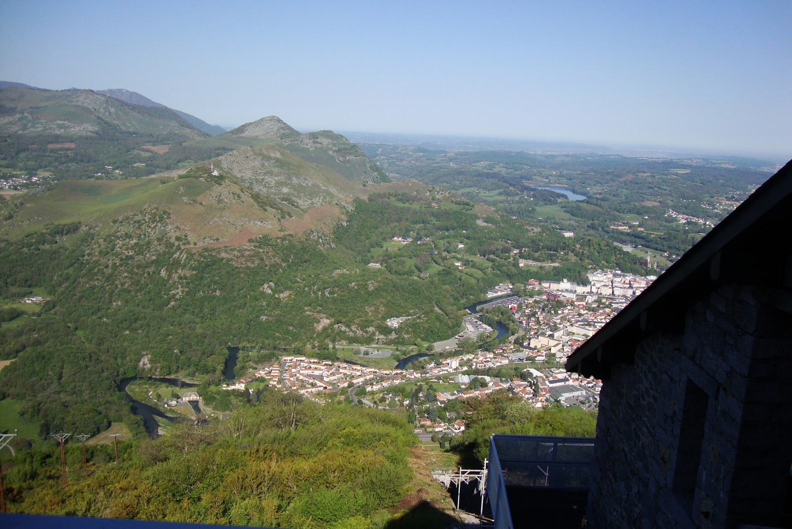 E, finalmente fomos subir a montanha ou não tivessemos nós nos Pirinéus, chama-se o funicular do Pic du Jer, também em Lourdes, subimos a uma altura de 1000 metros, numa espécie de ascensor montanha acima. De lá de cima tem-se uma vista sobre Lourdes e sobre as montanhas dos Pirinéus cobertos de neve. É espectacular!!!