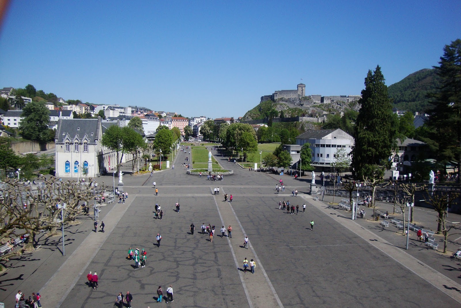 Pois é, neste fim de semana prolongado fui até França, uma amiga para quem eu faço uns trabalhos pagou-me a viagem, e lá fomos nós de excursão. Não tenho muitas fotos minhas porque a pessoa que normalmente me tira fotos não foi, pelo que só tenho fotos tiradas por mim. Fomos a Lourdes, ao Santuário Mariano, semelhante ao de Fátima, mas confesso que acho Fátima mais bonito. Aqui Nossa Senhora apareceu numa gruta a uma menina chamada Bernardette.