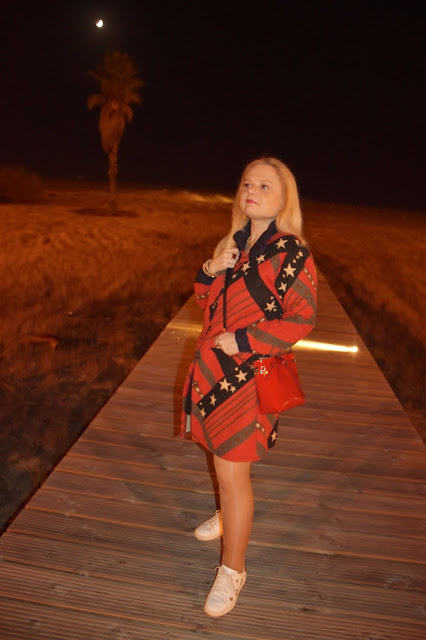 This is the second received from ROSEGAL, with the temperatures they have made its impossible to wear this coat by day, so nothing better than to do a night walk on the beach walkways and stroll with this beautiful coat full of stars, which is not too hot and thick, but great for this pre fall. I love the star pattern, I think it would also look good with bargains, but at the moment I do not have jeans that fit me OHHH !!!
